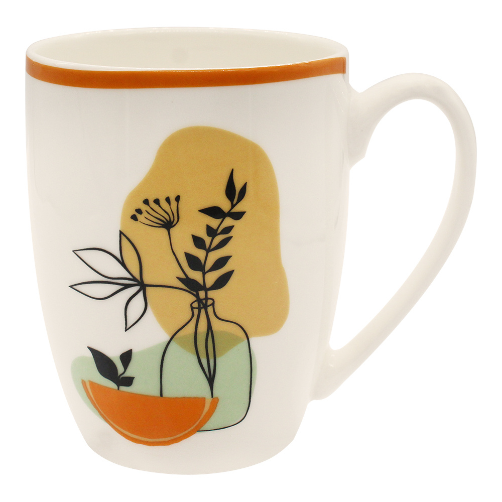 Кружка для чая и кофе Икебана Оранжевый ободок 320мл, керамика