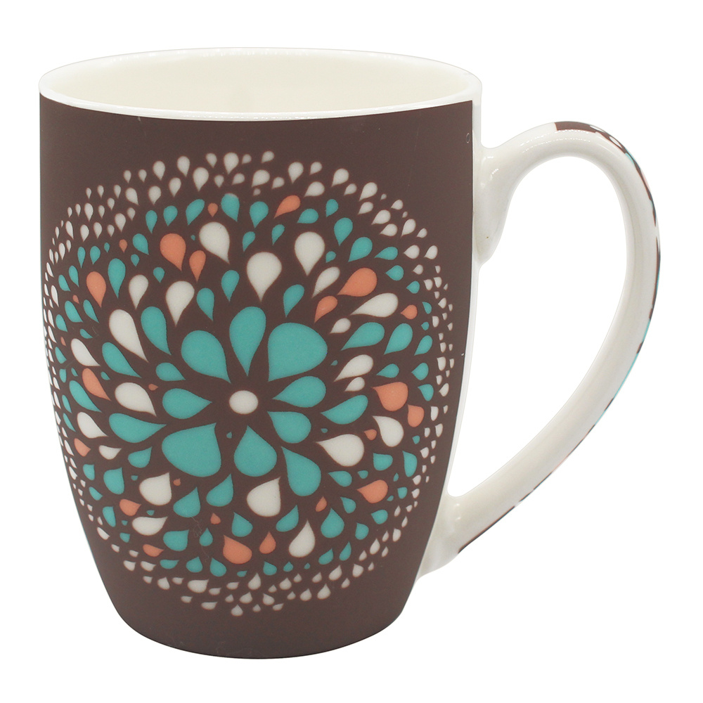 Кружка для чая и кофе Орнамент Коричневая цветок 330мл, керамика