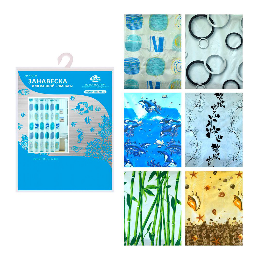 Штора для ванной комнаты 10094 Идиллия 180*180 см, в ассортименте