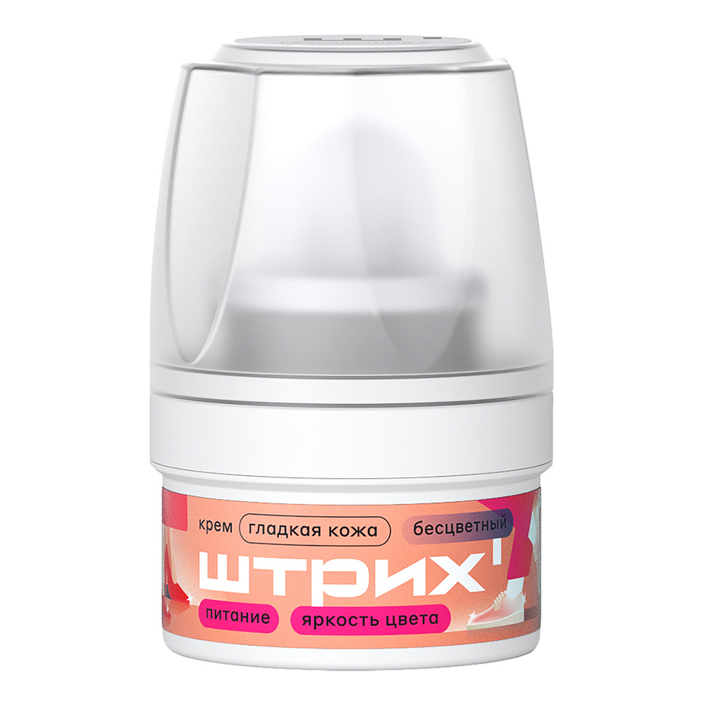 Крем для обуви Штрих для гладкой кожи, банка с губкой, бесцветный, 60 мл
