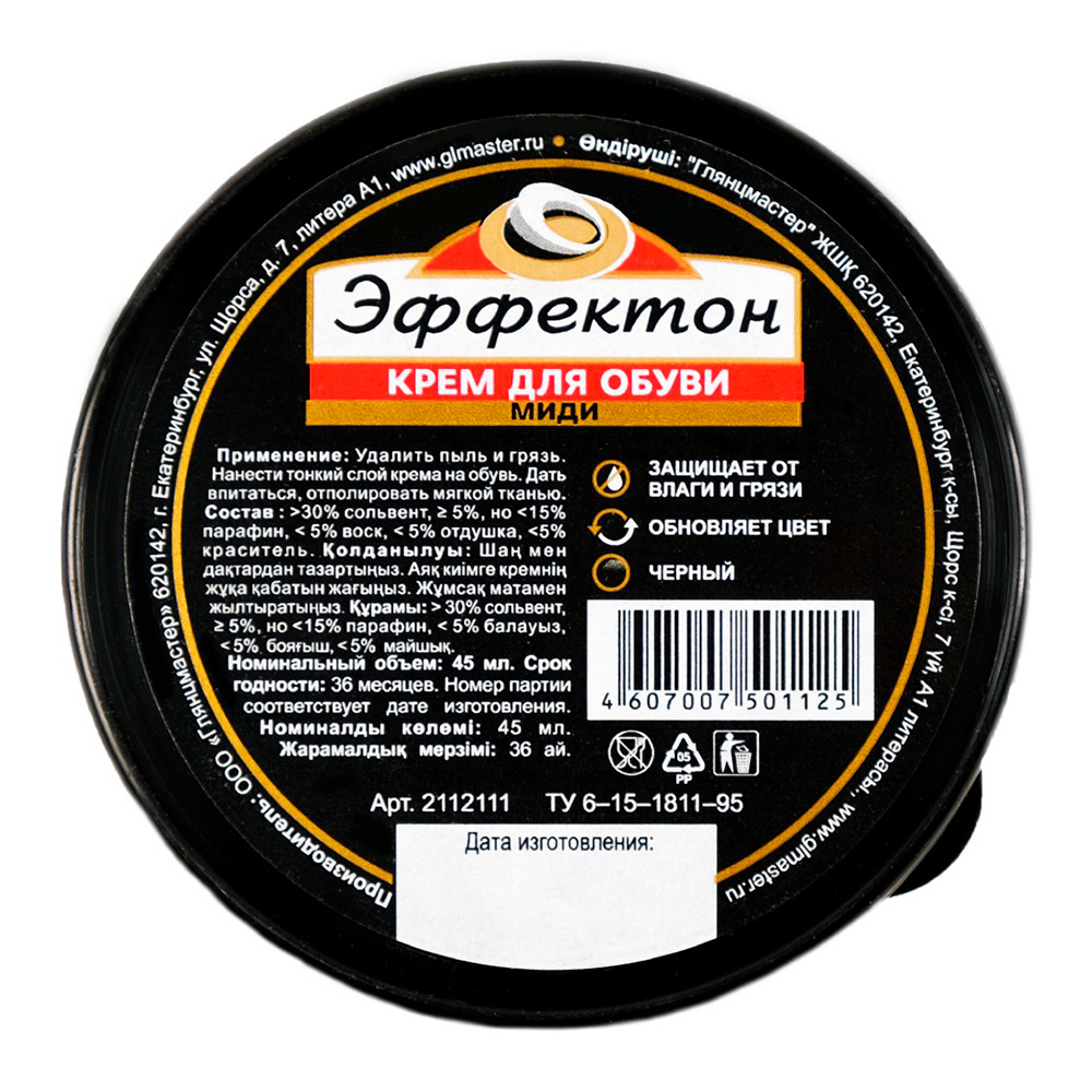 Крем для обуви Эффектон Люкс с губкой черный 50мл