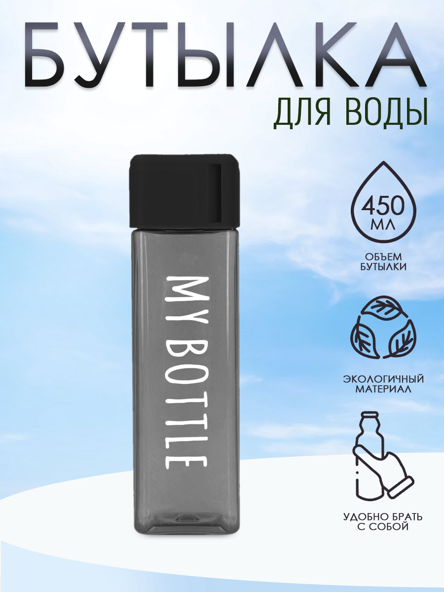 Бутылка для воды "My Bottle" с ремешком,матовая квадратная, 450мл, цвет черный