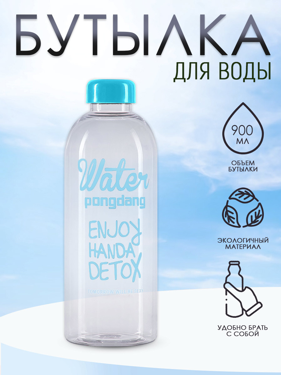 Бутылка для воды "Water" прозрачная 900мл, цвет голубой