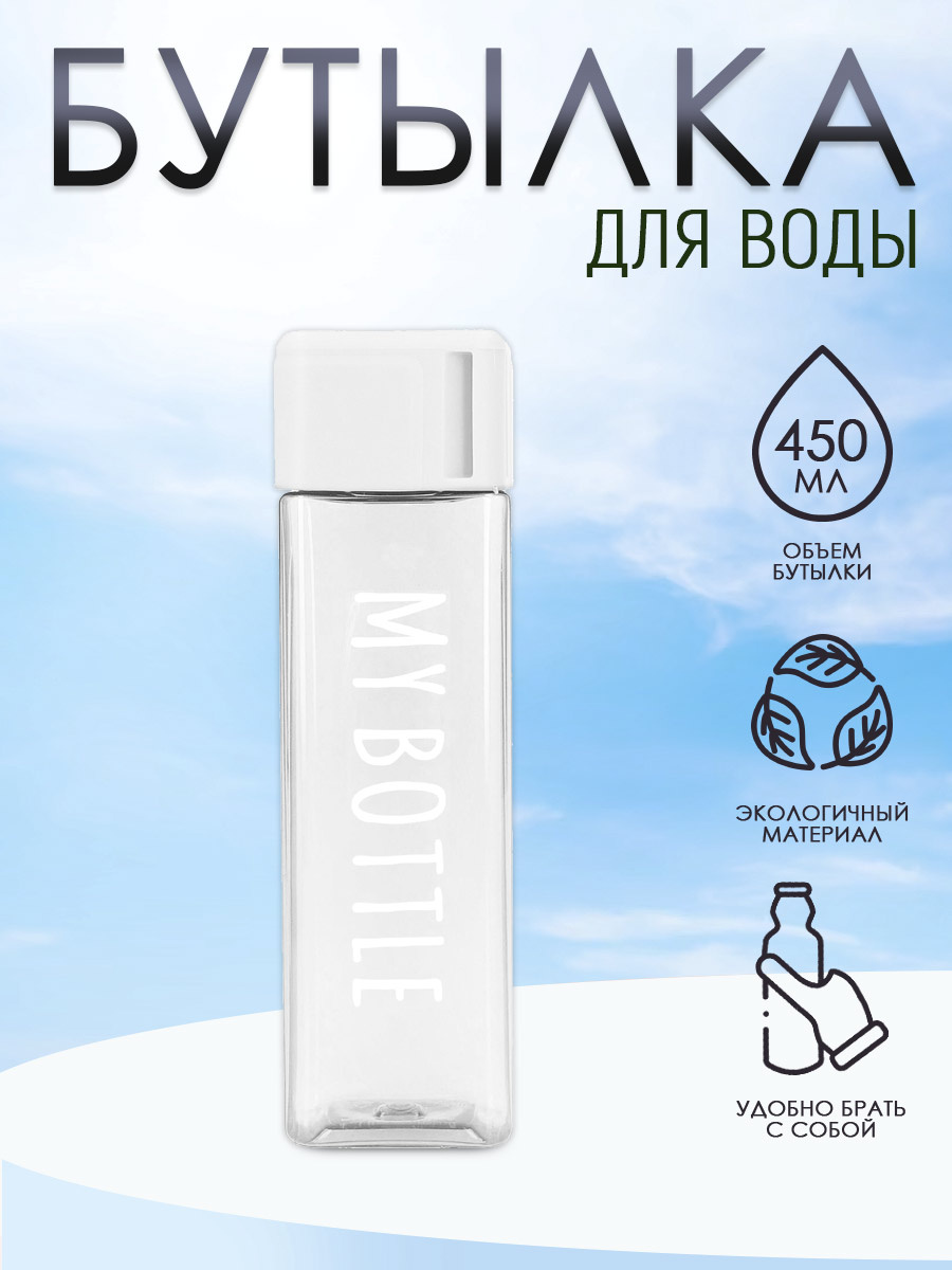 Бутылка для воды "My Bottle" с ремешком,матовая квадратная, 450мл, цвет белый