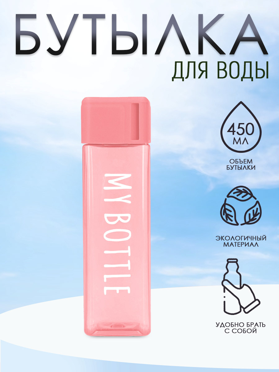 Бутылка для воды "My Bottle" с ремешком,матовая квадратная, 450мл, цвет розовый