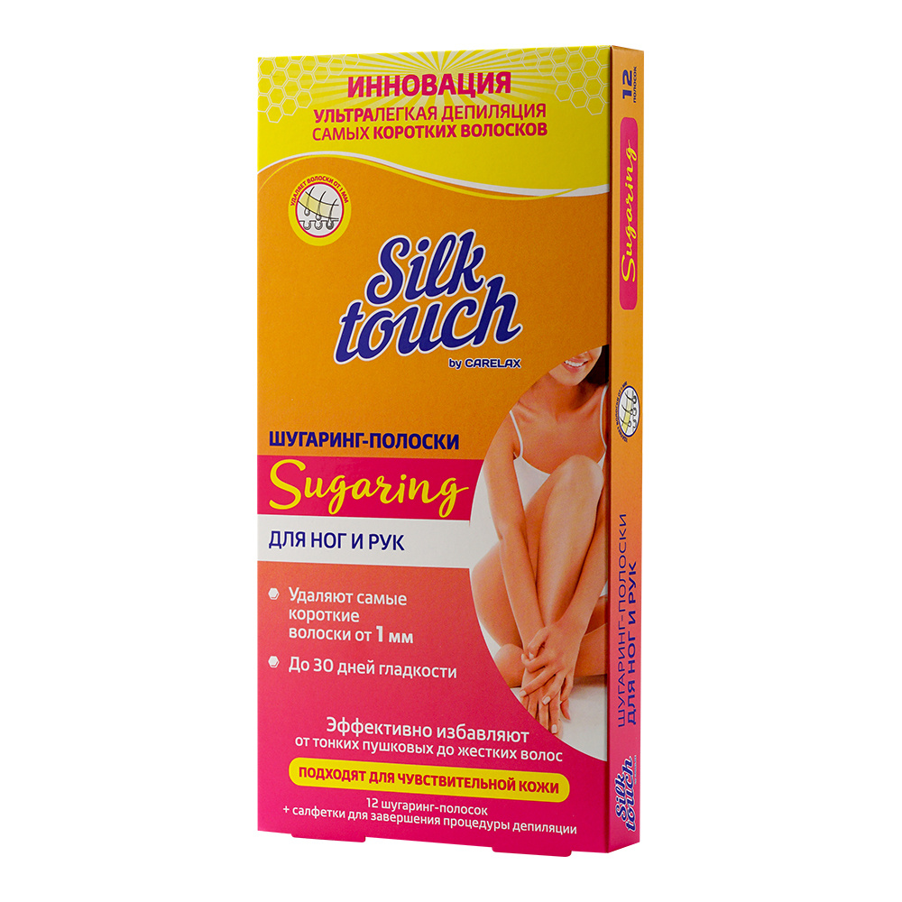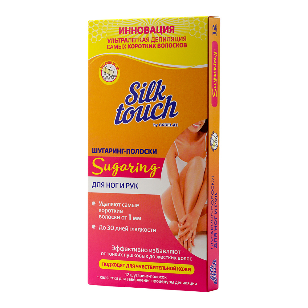 Сахарные полоски Carelax Silk Touch Тело, для депиляции, шугаринг, 12 шт