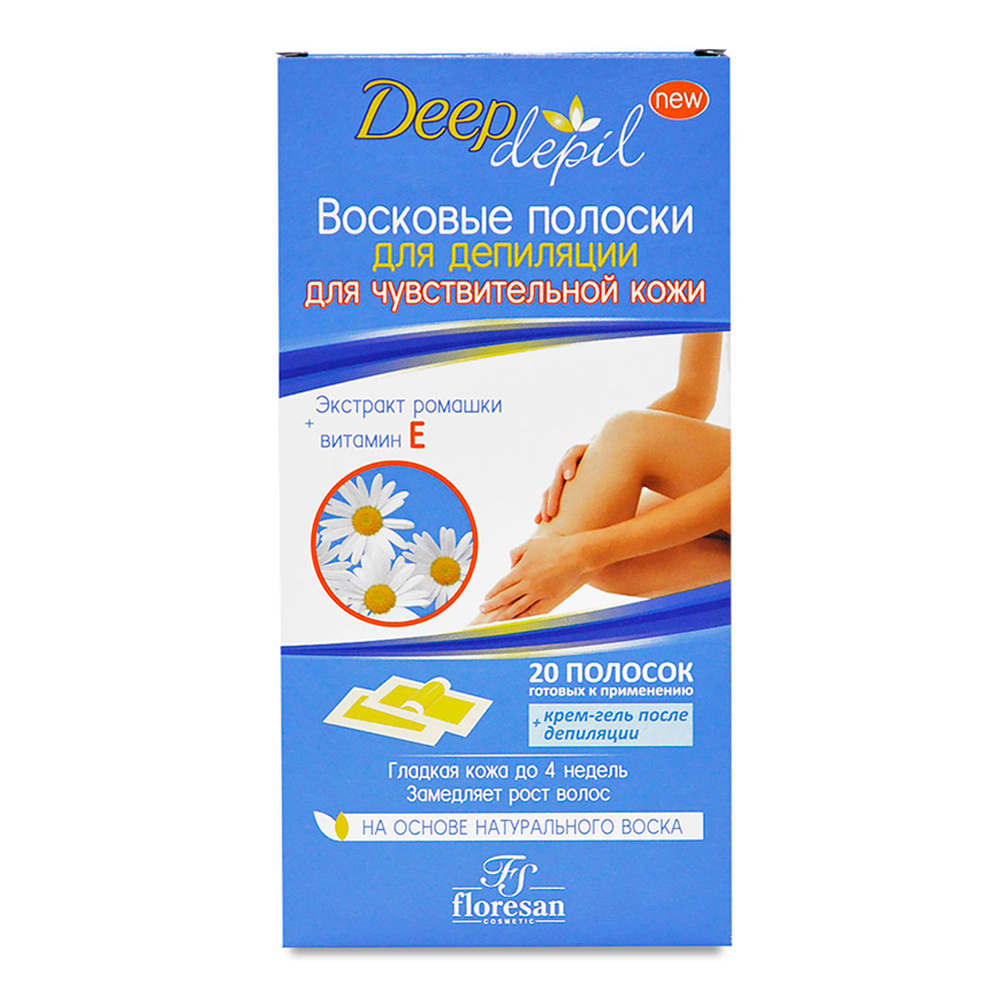 Восковые полоски Флоресан Deep depil для чувствительной кожи с ромашкой, 20 шт