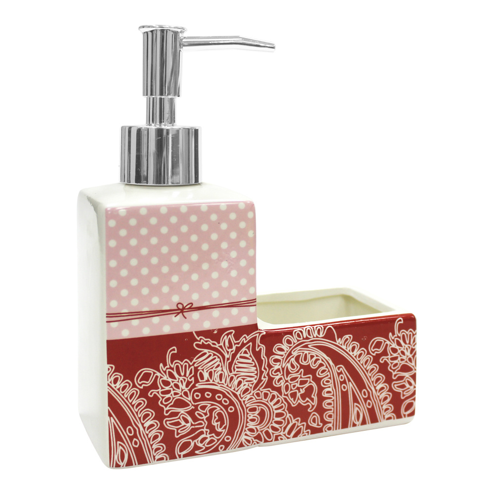 Дозатор для моющих средств DMSG-02 с губкой, 14*6*17 см, керамика, поролон, в ассортименте