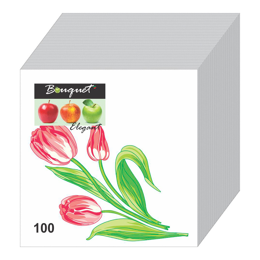 Салфетки бумажные Bouquet Elegant, Три тюльпана, 1-слойная, 24*24 см, 100 листов