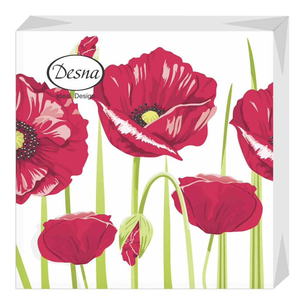 Салфетки бумажные Desna Design, однослойные, 24 см, Красные маки, 40 листов
