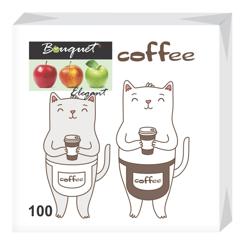 Салфетки бумажные Bouquet Elegant, однослойная, 24 см, Cofee Cat, 100 листов