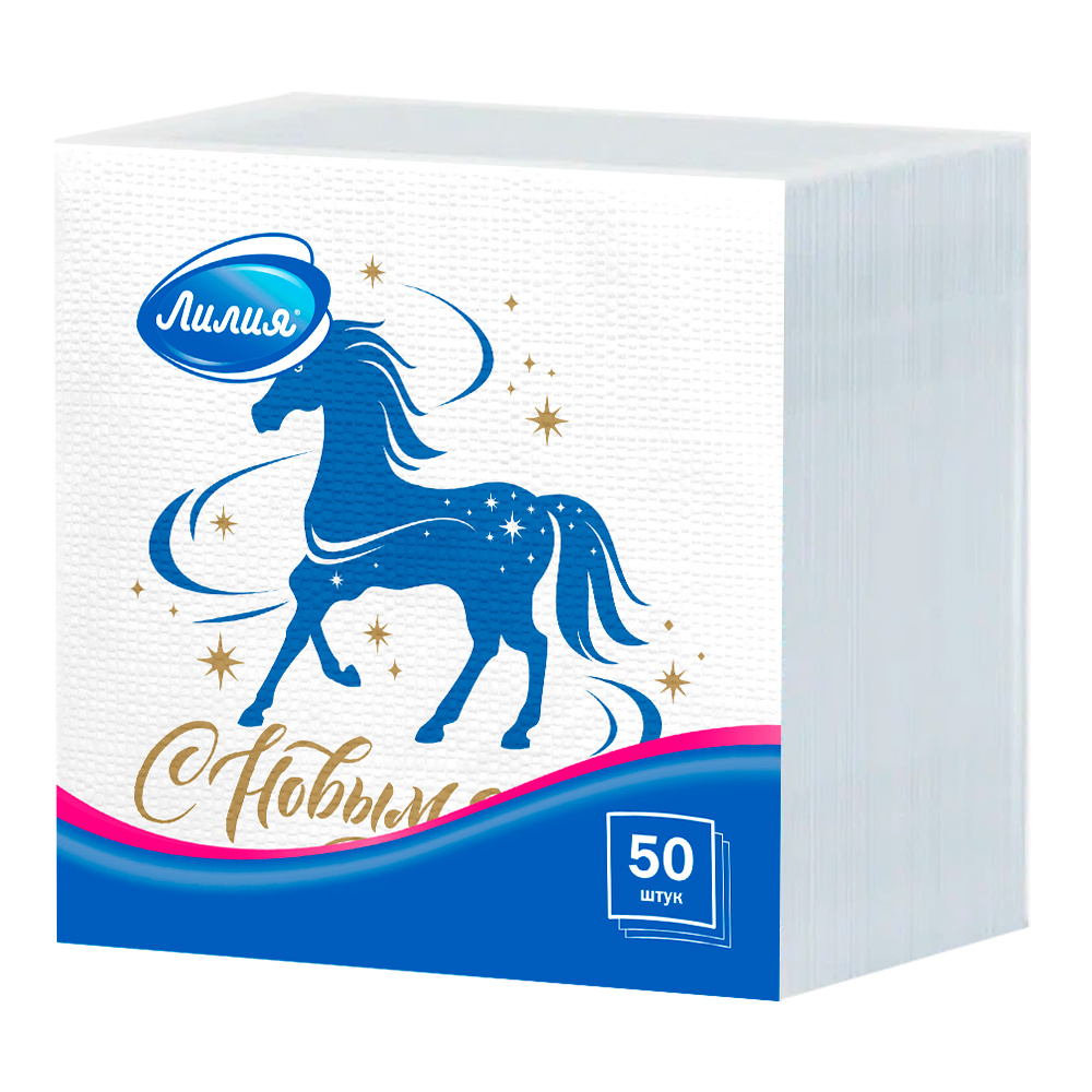Салфетки бумажные Лилия однослойные,новогодние, Счастливый год, 24 см, 50 листов