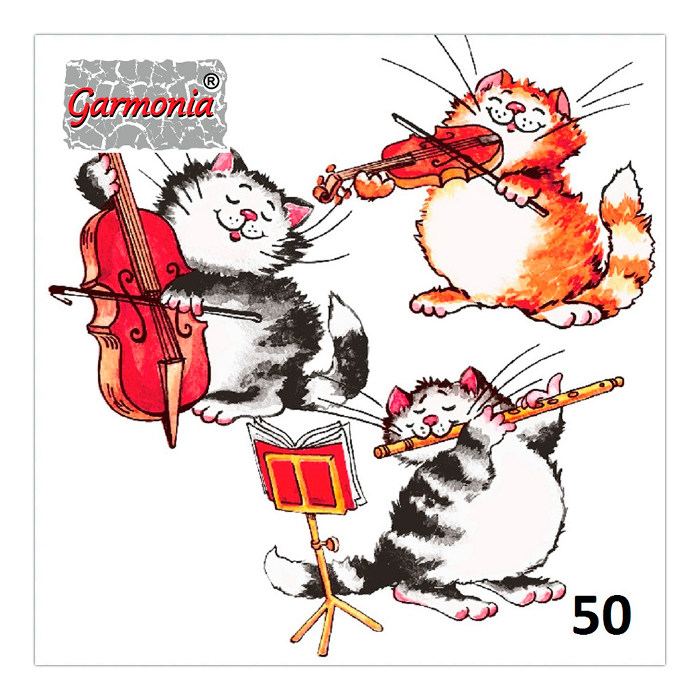 Салфетки бумажные Гармония цвета однослойные, 24*24 см, коты, 50 листов