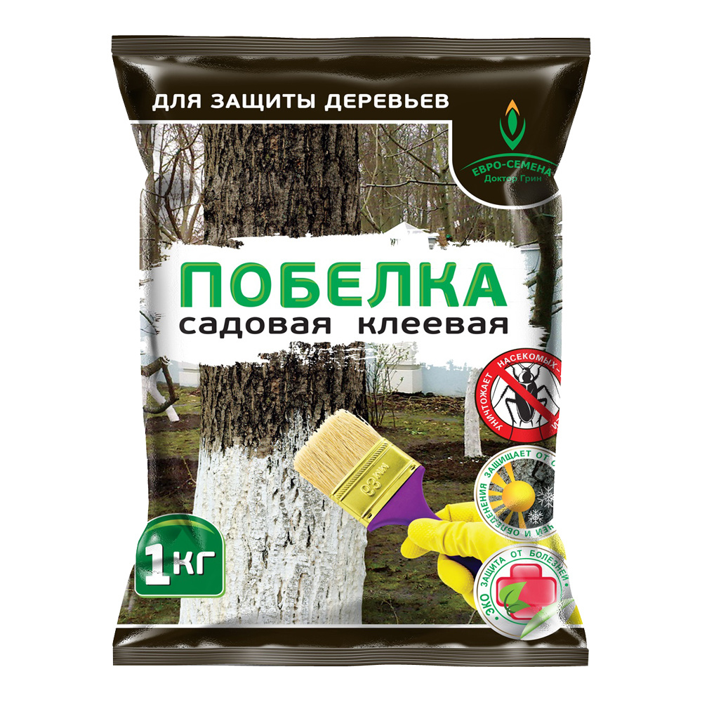 Побелка Евро-Семена садовая клеевая, для защиты деревьев, пакет, 1 кг