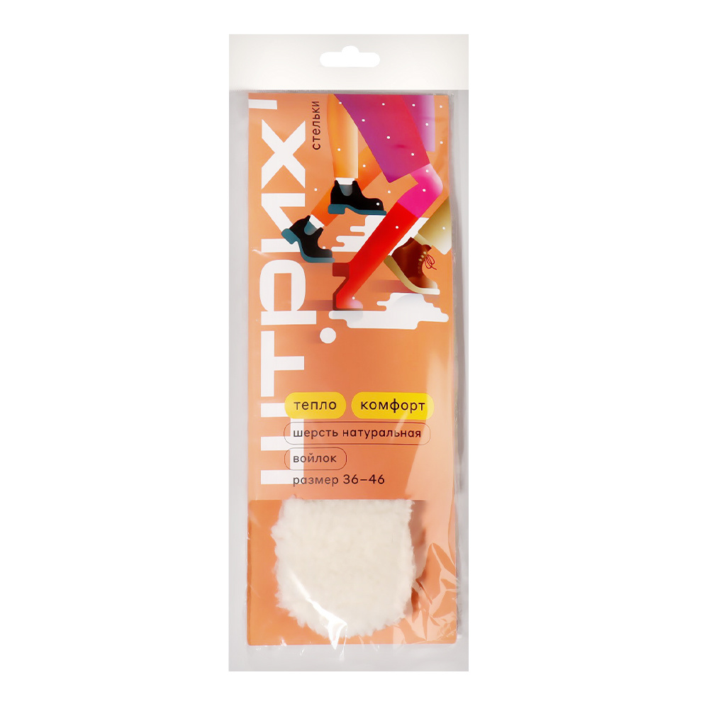 Стельки для обуви Штрих 7674629 утеплённые,войлочные,шерстяные,двухслойные, размер 36-45, белый