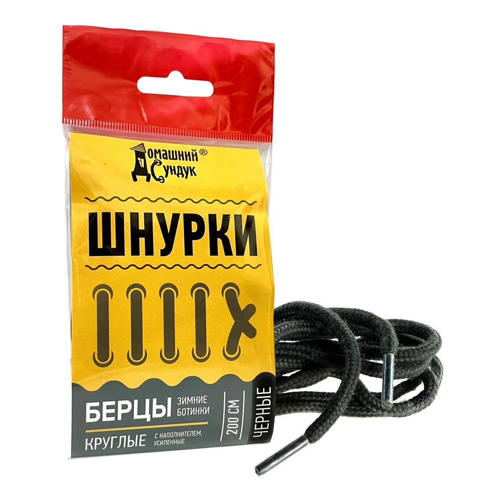 Шнурки для обуви ДС-386-2 Берцы, круглые, усиленные, с наполнителем, черные, 200 см