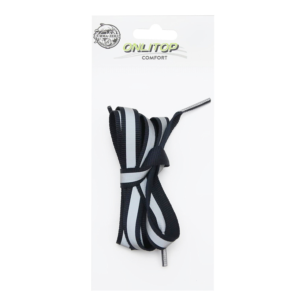 Шнурки для обуви ONLITOP 1859401 плоские, со светоотражающей полосой, 10 мм, цвет: тёмно-синий, 70 см