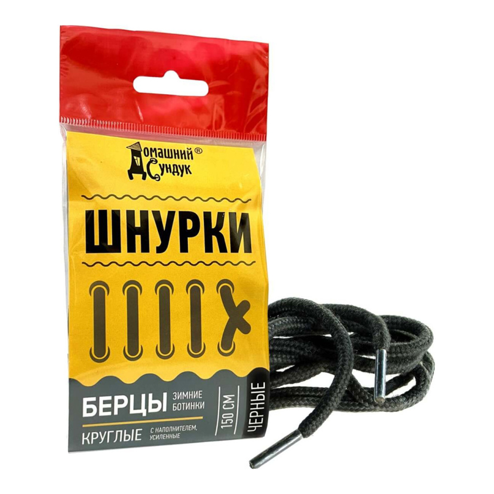 Шнурки для обуви ДС-386-1 Берцы, круглые, усиленные, с наполнителем, черные, 150 см