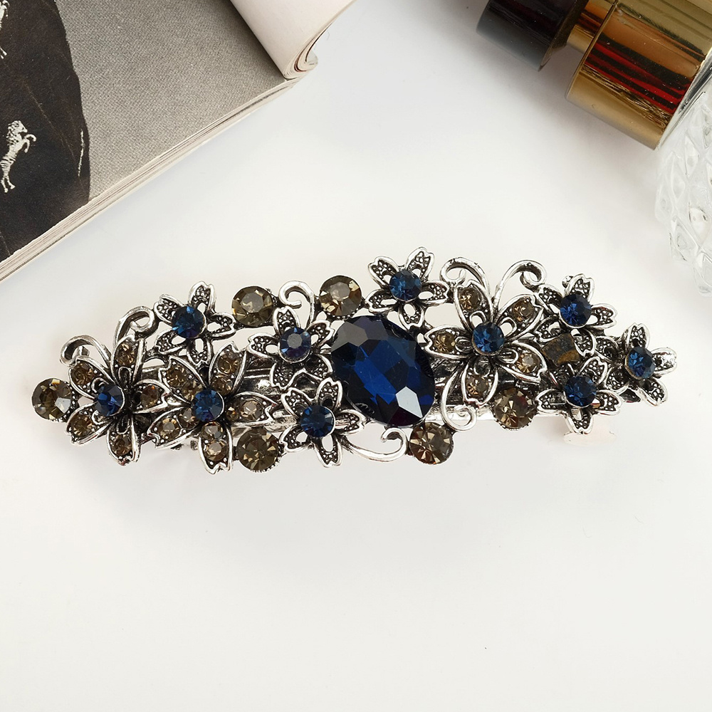 Заколка-автомат для волос Queen Fair 3925192 Синий туман, цветочки, металл, 9 см