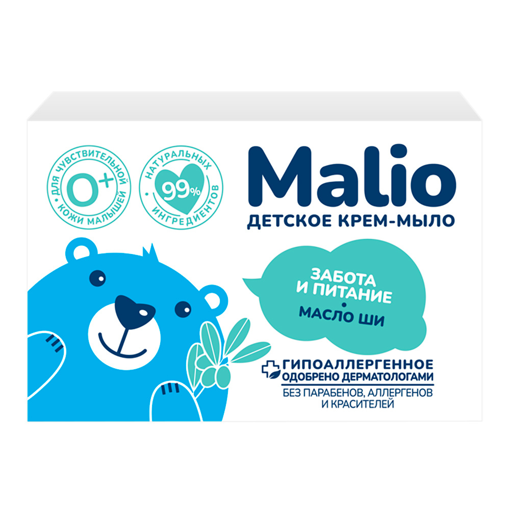 Крем-мыло туалетное детское Малио забота и питание, Масло ши, 90 г